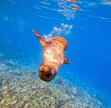 In the afternoon, we landed at Darwin Bay for an easy stroll among playful baby sea lions, and nesting gulls, boobies and herons. There is something so humbling about walking through a landscape where the animals have no fear of humans; they just continue their lives as you pass by. During the afternoon swim, we spotted a white-tip shark, various fish and a ray!