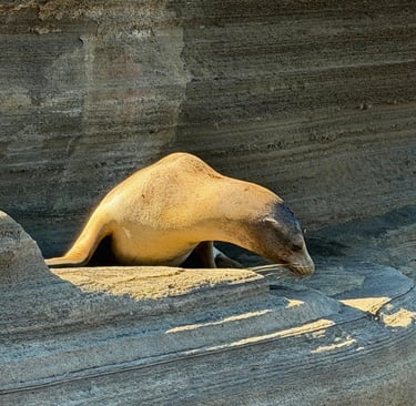 In the afternoon, we moved to Puerto Egas, known for its dramatic black volcanic landscapes and tide pools. We shared the beach with Galápagos fur seals, marine iguanas and watched a land iguana sunning themselves. The expedition team kept us informed with "tiny talks" and photography tips that helped us along the way.
