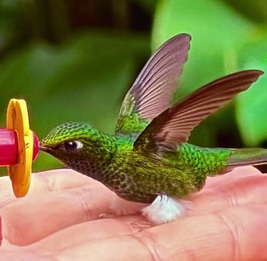 Before our cruise started, we planned a couple days to explore Ecuador. Our journey began in the vibrant city of Quito, a UNESCO World Heritage Site and one of the best-preserved colonial centers in South America. Before even hitting the water, we headed into the Mindo Cloud Forest on a private tour with our group. It was a sensory overload in the best way: tiny hummingbirds landing in our hands, buzzing past our ears, the taste of fresh finger bananas, and local coffee. We hiked to hidden waterfalls, took a cable car, saw a couple toucan and rewarded ourselves with a local lunch in Mindo—if you go, try the local beer and fresh trout with the garlic butter sauce! We capped the day with a chocolate tasting tour that ended with a chocolate facial (yes, really!).